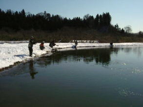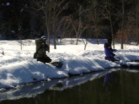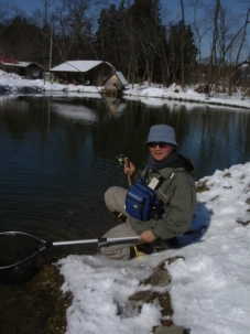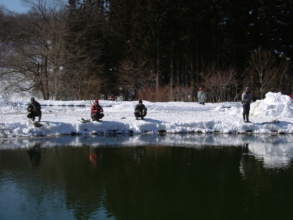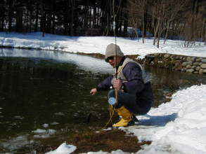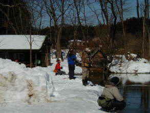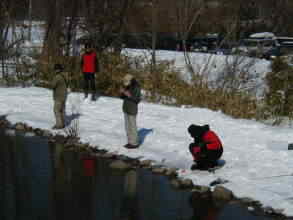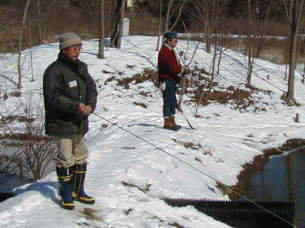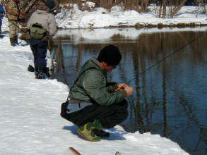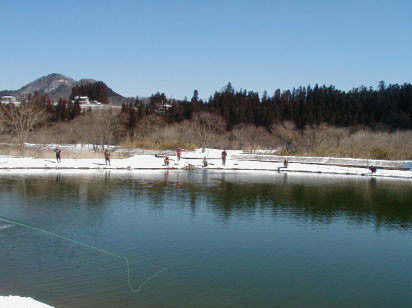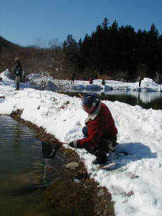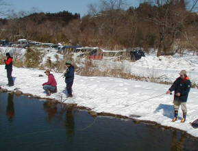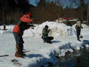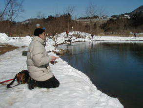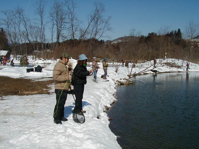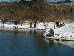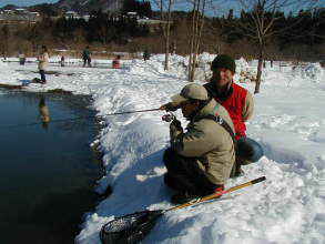 | 第9回秋保フィッシングエリア春の釣り大会ご報告 2005年3月6日 午前8時15分〜10時30分(途中15分の休憩&放流) 3月には珍しく朝の最低気温が氷点下8度などという予報で、 当日は案の定、最近まったく凍結しなかった池がよりによって大会当日に凍るなんて〜。 でもスタッフやお客様に氷割りのお手伝いをしていただき、 気温も上がった事もあり15分遅れで、なんとか開催することができました。 参加していただいた皆様お疲れ様でした、そしてありがとうございました。 |