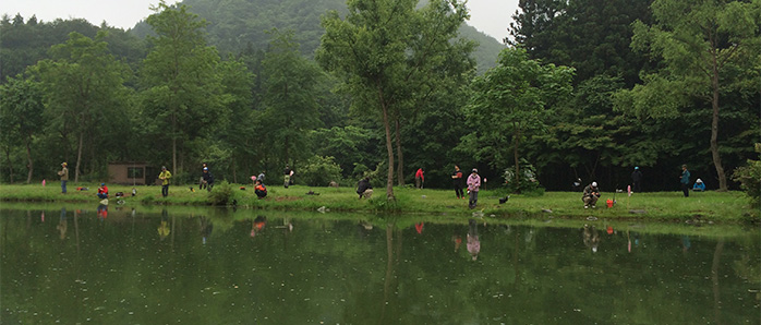 「釣りなんてやったことがない」なんていうビギナーから、ベテランまでとにかく誰でものんびり釣りを楽しめる「秋保フィッシングエリア」。なんといっても魅力は絶景のロケーション!春夏秋冬、季節によってその都度美しい表情を見せる山々と、響き渡る小鳥のさえずり。普段のせわしい時の流れもここならゆったり。まさにリフレッシュにもってこい!自然に囲まれ、自然に触れる。